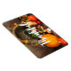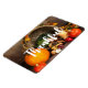 Magnet with a photograph of a thanksgiving harvest, set on a rustic wooden table. Pumpkin, potatoes, squash etc... make up this bountiful collection of food. Colourful autumn leaves surround the cornucopia basket.