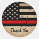 Rustic Thin Red Line Flag Firefighter Thank You Classic Round Sticker