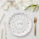 Elegant botanical watercolor colourful wildflowers, tiny flowers with bride and groom monogram garden or rustic barn summer wedding paper plates.