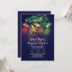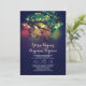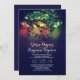 Rustic wedding invitation featuring string of lights hanging on the tree branches. Beautiful night/ late evening colours - whimsical dark blue night lights wedding invitation.