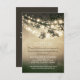 wedding reception card with string lights and old oak tree branches. Perfect reception for garden country wedding theme.