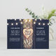 rustic tree heart and string of lights wedding invitation for country wedding inspired by trees with royal blue colour design. Romantic twinkle lights atmosphere, old vintage burlap background texture, carved heart in the wood and casual and trendy typography - just perfect invite for your rustic country wedding. Please contact if you need help with this design.