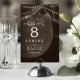 Illuminate your rustic wedding reception with these charming table numbers. The warm brown background features a beautifully illustrated tree adorned with twinkling string lights. Carved initials add a personalised touch, making each table number a unique keepsake for your special day. Perfect for outdoor or indoor celebrations, these table numbers create a warm and inviting atmosphere.
