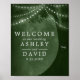 Announce your rustic wedding with this enchanting poster. A majestic tree silhouette, adorned with twinkling string lights and personalised with your initials, sets the scene for your special day. The lush green background evokes a natural, romantic ambiance. Perfect for displaying at your venue or sending as a save-the-date, this poster will captivate your guests.