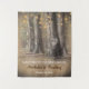 Rustic country wedding tapestry featuring an enchanting outdoor woodland wedding setting, glowing string twinkle lights, a romantic carved heart on the trunk of a tree with your initials and a text template that is easy to personalise.