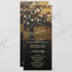 This beautiful wedding program features a rustic yet elegant design with a tree at sunset or dusk adorned with strings of lights. The titles are written in fancy script calligraphy, and there is space for your ceremony and wedding party details, as well as a short thank you for your guests. Wonderful way to welcome your friends and family to your wedding celebration.
