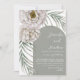 This unique botanical design has been painted in watercolor, and is an original illustration from our studio. Featuring elegant sage green palms and large off white blooms around a sage green archway. Have fun creating your perfect invitation.