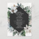 Rustic beach theme featuring palm leaves and white florals around dark grey geometric design.