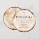 Designed in the shape of a round card, it mimics the appearance of a wood slice, complete with intricate tree rings. This unique and eye-catching design sets the tone for a memorable and one-of-a-kind Quinceañera celebration for your twin girls.