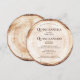 Customise the invitation with the names of your girl and boy, along with the venue, date, time, address, and RSVP information. The round card design imitates a wood slice, showcasing the beauty of tree rings and adding a rustic flair to the overall look.