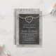 A rustic rope tied in a heart decorates this wedding invitation on a chalkboard barn board background, making it perfect for the rustic, country, barn or western themed wedding. It is shown on the matte paper; however, I recommend the linen or white felt paper for a textured feel. Scroll down to see the rest of the wedding collection, and if additional items are needed, just contact us at prettyfancyinvites@gmail.com with your request