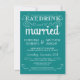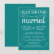 Eat, Drink, and be Married -- Vintage style rustic country wedding invitations -- Swirly, curly scrolls and old-fashion typography on tropical teal turquoise blue background. Add your names and wedding info in this easy to use template. Elegant but fun and whimsical, chalkboard style script writing can be modified for your formal or semi-formal retro wedding theme. Casual modern style is perfect for trendy contemporary weddings with a fun touch of sophisticated charm for the traditional bride and groom. Please contact us for help with customisation if you need additional room for your wedding details. Other sizes and chalkboard styles available.