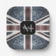 Rustic UK flag red blue sparkles glitters Monogram Paper Plate