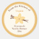 A rustic with yellow kraft entourage Label Sticker with an illustration of a vanilla flower and its dried sticks for your homemade Vanilla-based products or recipes (extract, dried sticks, cake, ice cream, candle, soap). Perfect for labelling and sharing your artisanal products with friends and family, or to sell your products on a market!