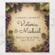 These custom bottle labels feature an elegant, Tuscan style vineyard theme with purple grapes hanging from vines. The background features a rustic parchment paper design. They're perfect for a wine tasting, anniversary celebration, or other special event. You can personalise the labels to include your own custom text and party information.