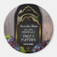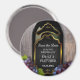 A rustic background fits well into a vineyard or winery themed wedding. A bottle of wine sits in front of a weathered rustic wine barrel with wine grapes and leaves around it on this save the date magnet. The information prints on the label itself. Available with matching products.