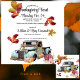 Watercolor autumn leaves, rusty orange-red and golden green, drift across this invitation. Anchoring the bottom are a rustic, rusty vintage blue truck and arrangements of pumpkins, flowers and foliage. The details for your "Thanksgiving Feast" gathering are in two contrasting fonts, a script font and a small, sans serif, both in black. It's simple to swap the details of your event for our placeholder information. On this versitile invitation, you can make the hours for brunch or dinner instead of lunch. Just click "Personalise" and get started. The back is a slightly larger, slightly modified version of the front with the line "We hope you can join us" in the script font.