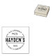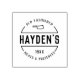 This wooden stamp is a great choice for anyone looking to add a personal touch to their product packaging. This design features a round shape with your name in the centre in a rustic font and your business information around it in a circle in vintage style text. All the text is fully customisable so add your own by clicking the "personalise" button!