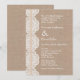 This elegant invitation is ideal for a stylish wedding with a vintage flair. It features a column of doilies on the left edge with a ribbon on top and a soft burlap texture on the background. Chic and delicate design great to celebrate a memorable event.