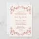 Elegant vintage floral line art wedding invitation with a crimson red rustic chinoiserie ornamental frame design and whimsical handwritten font.