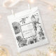 This design features rustic black and white vintage flowers. The black and white floral design combines vintage flowers together with an opaque white layer, a black border and simple text to create a sophisticated classy look. The use of classy typography for the wording text compliments the design. This favour bag design is ideal for any wedding theme. The perfect design for all seasons. Matching wedding invitations and other stationery items are also available.
