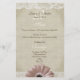 Pretty pink gerbera daisy accents this rustic vintage inspired menu to compliment our invitations.