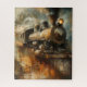 This captivating puzzle features a vintage steam engine rendered in a rustic, abstract style, blending rich earthy tones and textured brushstrokes for a timeless, nostalgic feel. The intricate details of the locomotive, combined with the artistic, weathered esthetic, make this puzzle both a visual delight and a rewarding challenge. Perfect for train enthusiasts, history lovers, and those who appreciate classic industrial design, this puzzle offers a unique and engaging experience.