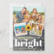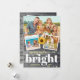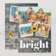 Create your own personalised family photo collage rustic Christmas cards this fall / winter holiday season. Do you love sunflowers and red holly berries? Your friends and family will love seeing your smiling faces on such a bright and cheerful floral template. The unique watercolor design features a country vintage grey wood illuminated with elegant glowing string lights on the front, while the backside depicts a luminous wicker deer with antlers and a plaid bow, along baby Rudolph the red nose reindeer. Beneath their hooves lie more festive holiday lights over a dusting of white snow and yellow sunflower petals. Easily replace the four images with your own family photos (3 on the front, 1 on the back), and make other simple alterations, such as typography style, and background colours. The message "merry and bright" can be changed to something else, and of course don't forget to add your family name and year to the bottom. You can also add your own holiday greeting to the back as well. Care to change up the background colours? Select from different wood tones as well (these layers can be revealed if you customise the design further). Happy holidays and New Year, and have fun creating your own personalised boho sunflower Christmas cards! Category: botanical wood Christmas cards; 4 photo collage Christmas cards; and vintage Christmas cards. Festive holiday colour theme: yellow gold, grey, white, and burgundy red / green.