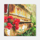 This cute little rustic scene features bright red carnation flowers, a rusty Chevy truck and vibrant green natural backdrop.