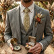 Pretty necktie with a delicate trailing vine pattern of small orange and golden flowers mixed with soft sage-green leaves on a light cream background. It has a gentle vintage botanical charm — refined, fresh, and easy to wear. Great for spring weddings, garden parties, or anyone who likes a subtle floral design with a warm, natural feel.
