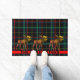A timeless buffalo plaid pattern in red and green featuring walking moose silhouettes door mat. Plaid never goes out of style. Perfect for home decor or rustic cabin decor. Simply personalise with your name.