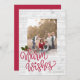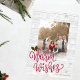 A traditional and rustic photo holiday card, featuring a white wood background overlayed with your favourite photo and "warm wishes" in red hand lettering, with holly leaves and berries establishment. The reverse is in solid festive red.