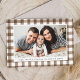 Embrace the cosy charm of the season with our Rustic Watercolor Plaid Thanksgiving card, a perfect blend of tradition and personalisation. Featuring a horizontal photo framed by a warm brown watercolor plaid pattern, this design is your canvas to create a truly unique Thanksgiving card. Add a personal touch by customising the front of the card with your own heartfelt greeting and name.