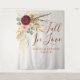 Create a stunning focal point for your celebration with this Fall in Love Bridal Shower Backdrop Wall Tapestry, part of the elegant Fall in Love Collection by Porch And Gable Design. Designed with a romantic autumn palette, it showcases watercolor fall florals, deep burgundy chrysanthemums, soft blush pink roses, eucalyptus greenery, golden leaves, and dried pampas grass arranged in a lush, seasonal display. The script text reads “Fall in Love” with a customisable area underneath to personalise with the bride’s name, shower date, or a sweet message. Perfect for a photo backdrop, dessert table display, or welcome wall, this tapestry instantly transforms your venue into a warm and inviting space for guests to celebrate. Durable, lightweight, and easy to hang, this fall bridal shower backdrop can be reused as bridal shower decor, wedding reception signage, and more. Pair with coordinating invitations, party signs, and stationery from the Fall in Love Bridal Shower Collection to complete your cohesive look.