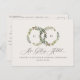Rustic watercolor floral wreath monogram wedding save the date postcard. With beautiful watercolor details and elegant we are getting hitched script text. This modern wedding invite is sure to set the style for your big day.