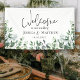 Elegant watercolored foliage of eucalyptus foliage and botanical branches and leaves in shades of sage, green and dusty blue. Beautiful rustic wedding banner with custom names and wedding date. Easily add the names of your bride and groom and their wedding day. See our collection for more gorgeous products with this design. Rustic Watercolor Foliage Wedding Banner.