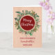 Merry Christmas for grandmother card in rustic watercolor foliage and country vintage paper pattern.