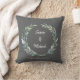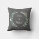 Rustic dark grey pillow with watercolor botanical olive leaves, Bride and groom, Wedding pillow.