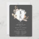 Contemporary rehearsal dinner invitation features the organic beauty of natural coloured watercolor dried florals and monogram crest.