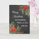 Merry Christmas for mother in law card in rustic watercolor poinsettias and foliage and chalkboard background.