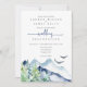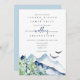 This exquisite wedding invitation showcases a casual watercolor design of a forest and mountain landscape, with tastefully simple details and rustic calligraphy text. The reverse side boasts a serene dusty blue color. With a timeless yet contemporary appeal, this invitation perfectly captures the essence of your adventurous wilderness wedding.