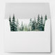 Elegant stylish rustic modern wedding invitation envelope with watercolor evergreen trees landscape liner and personalised script sender return address.