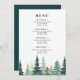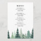 Rustic Watercolor Pine Forest Winter Wedding Menu.