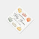 Add a festive touch to your celebration with these gender-neutral baby shower napkins featuring watercolor pumpkins in soft autumn hues of orange, yellow, sage green, cream, and dusty rose. “Baby Shower” is displayed in elegant handwritten script at the centre, with the mother-to-be’s name and shower date shown below. Pumpkins accent the top and bottom of the design, creating a warm seasonal look that’s perfect for fall baby showers.