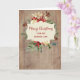Merry Christmas for son in law card in rustic wood pattern and watercolor flowers and foliage.