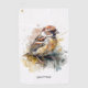 Keep your clubs clean with a touch of charming art and personality with this beautiful custom golf towel, featuring our "Rustic Watercolor Sparrow" design. The serene sparrow, rendered in soft, earthy watercolor tones, adds a gentle, artistic flair to your golf gear.