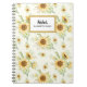 Modern cute girly, colourful rustic and whimsical Notebook featuring watercolor sunflowers pattern in light green background and modern calligraphy. This will be a perfect feminine accent for your office and perfect as personised gift.