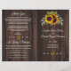 Rustic Watercolor Sunflowers Wood Wedding Program