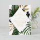 Tropical Leaves Gold Foil Frame Wedding Invitation Postcard | Invite family and friends to your wedding with this customisable gold foil wedding invitation postcard. This tropical invitation features watercolor illustrations of tropical leaves and plants with faux gold foil leaves and black brush watercolor accents. Perfect for summer weddings.