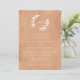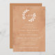 This simple but elegant wedding invitation features a subtle clay coloured watercolor texture background. It space for your initials at the top, surrounded by two illustrated branches. It's the perfect wedding invitation for a rustic fall wedding.